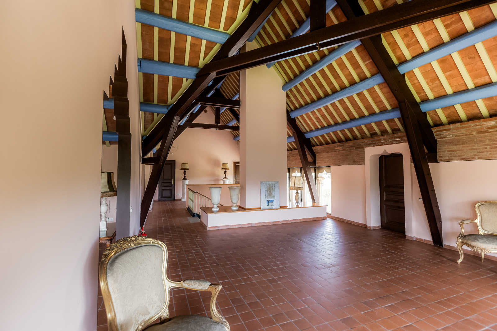 The space conveys a sense of openness and serenity, enhanced by high ceilings that reveal the charm of the original structure, where period terracotta bricks remain exposed. This architectural detail not only preserves the history of the house but adds a warm, authentic texture that makes the attic a truly unique setting—ideal for private moments, intimate gatherings, or bespoke artistic and cultural events.
