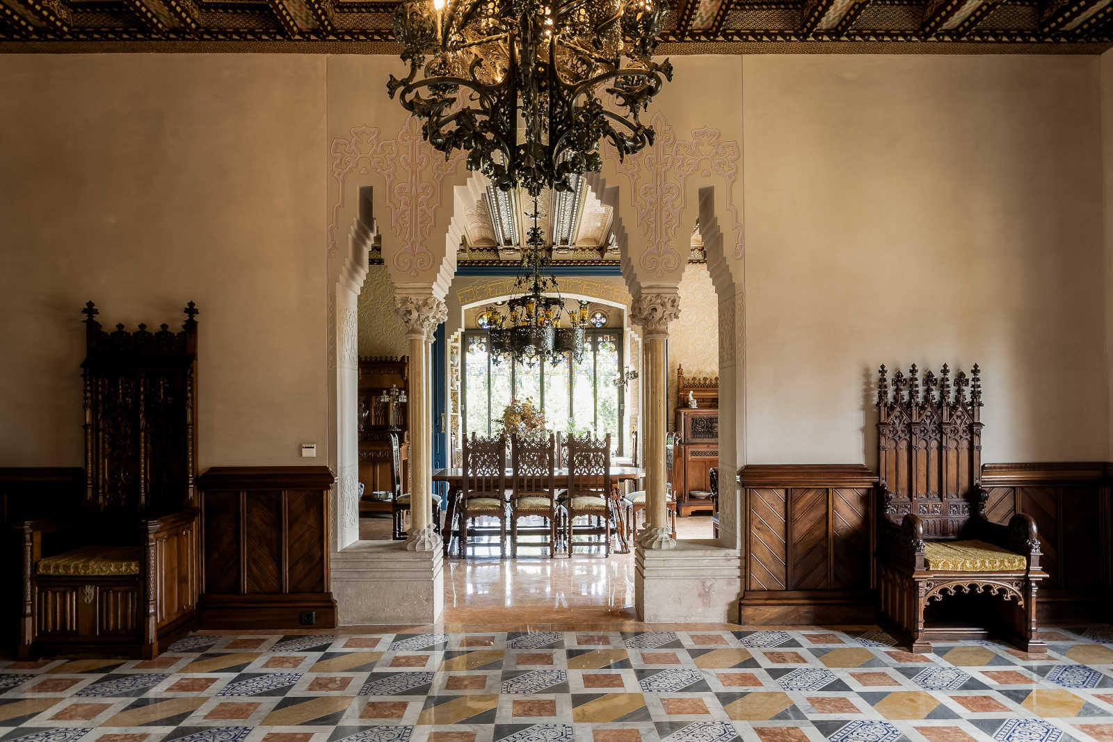 The Noble Halls of Casa Garí represent the pinnacle of Puig i Cadafalch’s genius within this modernist residence. Spacious, light-filled areas—including the grand entrance hall, the main dining room, and the games room—unfold with unparalleled elegance.